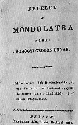 1813-ban megjelent Mondolat című gúnyos röpirat és az erre 1815-ben adott Felelet, amit Kölcsey